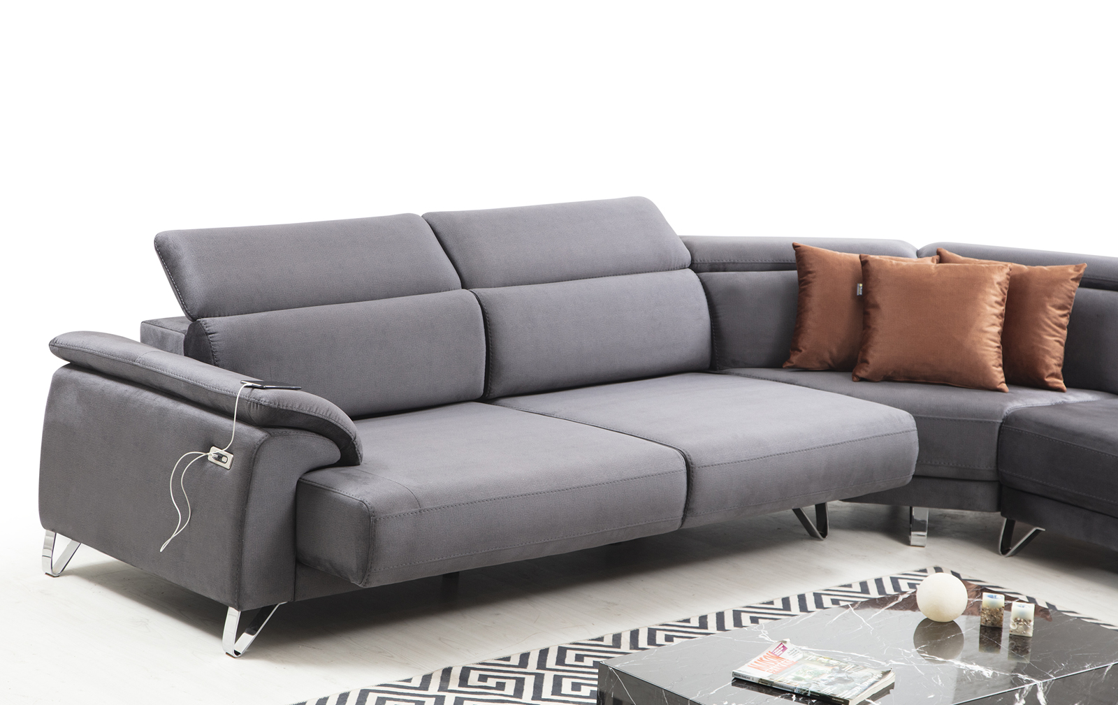 Köşe koltuk takımı modelleri hem şık hem de günlük tarzları ile her kullanıcının konforu için üretilmiştir. Farklı modüler parçalardan oluştukları için küçük oturma odaları ve büyük salonlarda rahatlıkla kullanılabilir.