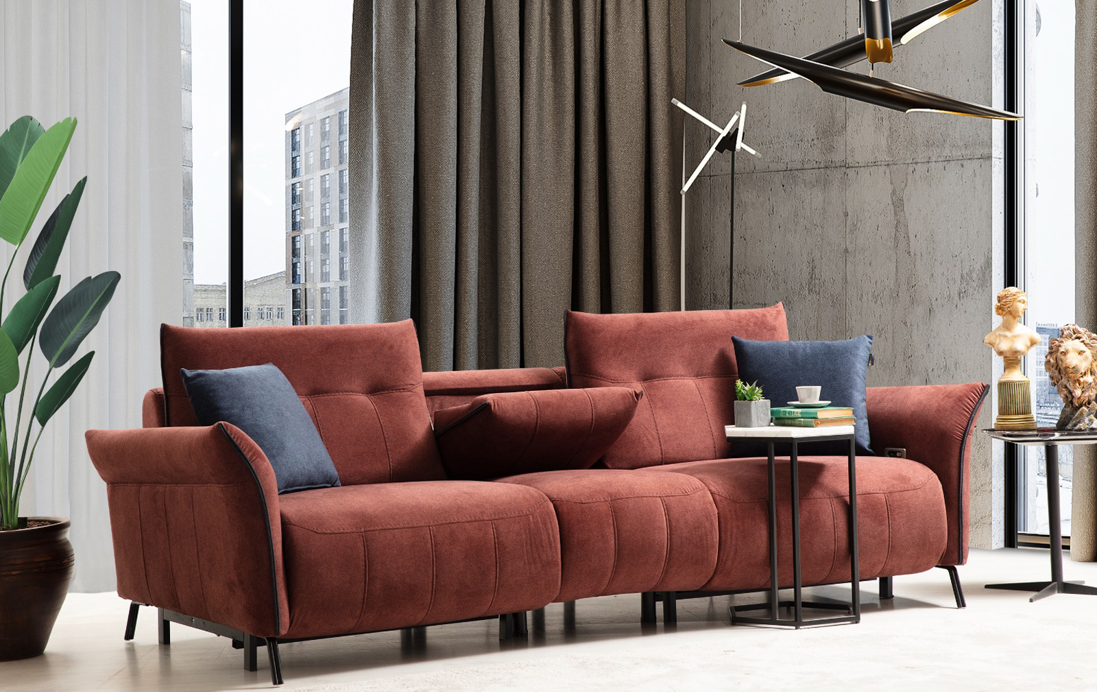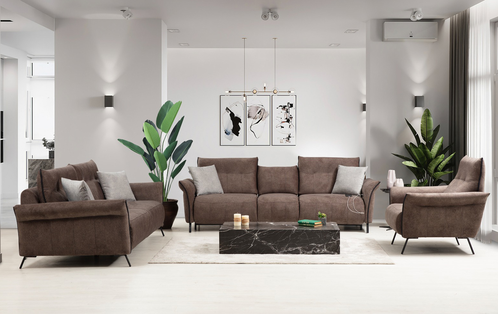 Kişisel konforun çok daha ötesinde olan modern koltuk takımları, kolay temizlenebilen kumaş yapıları ve ses sitemi ya da elektrik prizi gibi elektronik detaylarıyla fark yaratmaya devam ediyor.